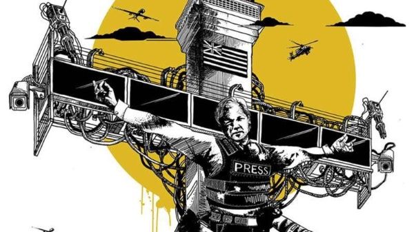 Los autores de la obra, Shanti y Signl, recuerdan en su página de internet que Assange lleva privado de libertad desde hace casi 10 años “por revelar los crímenes de guerra terribles e inhumanos en un conflicto  por el petróleo que es contraria al derecho internacional y por poner sus conocimientos a disposición del público en general”,  desde que en 2010 hizo la primera filtración masiva de cables diplomáticos y de reportes sobre la guerra de Irak, de Afganistán.
