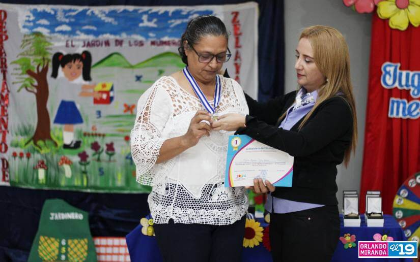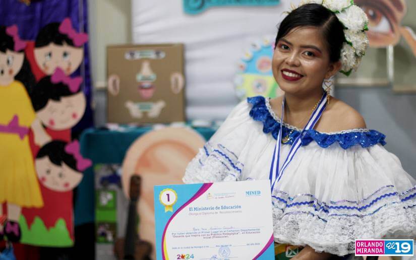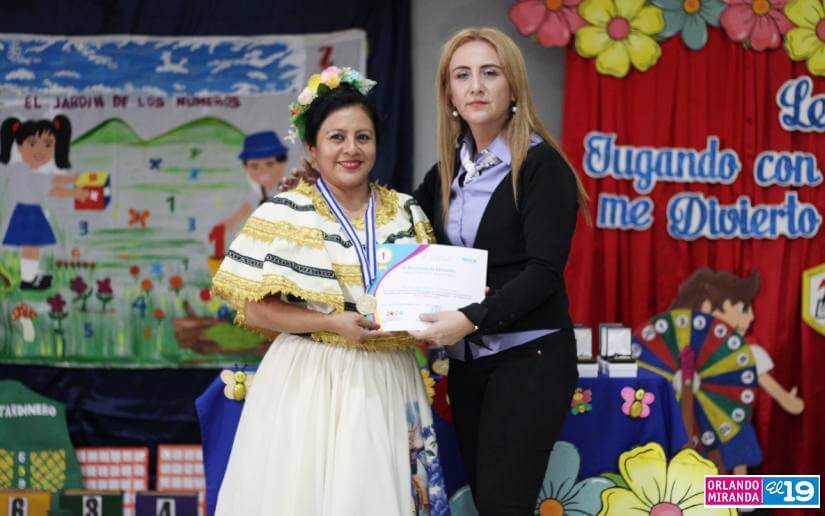 La profesora María José Montalván Granados del Centro Escolar Asunción de María de la ciudad de Boaco, es la ganadora del primer lugar del Certamen Nacional de Educación Inicial, organizado por el Ministerio de Educación.