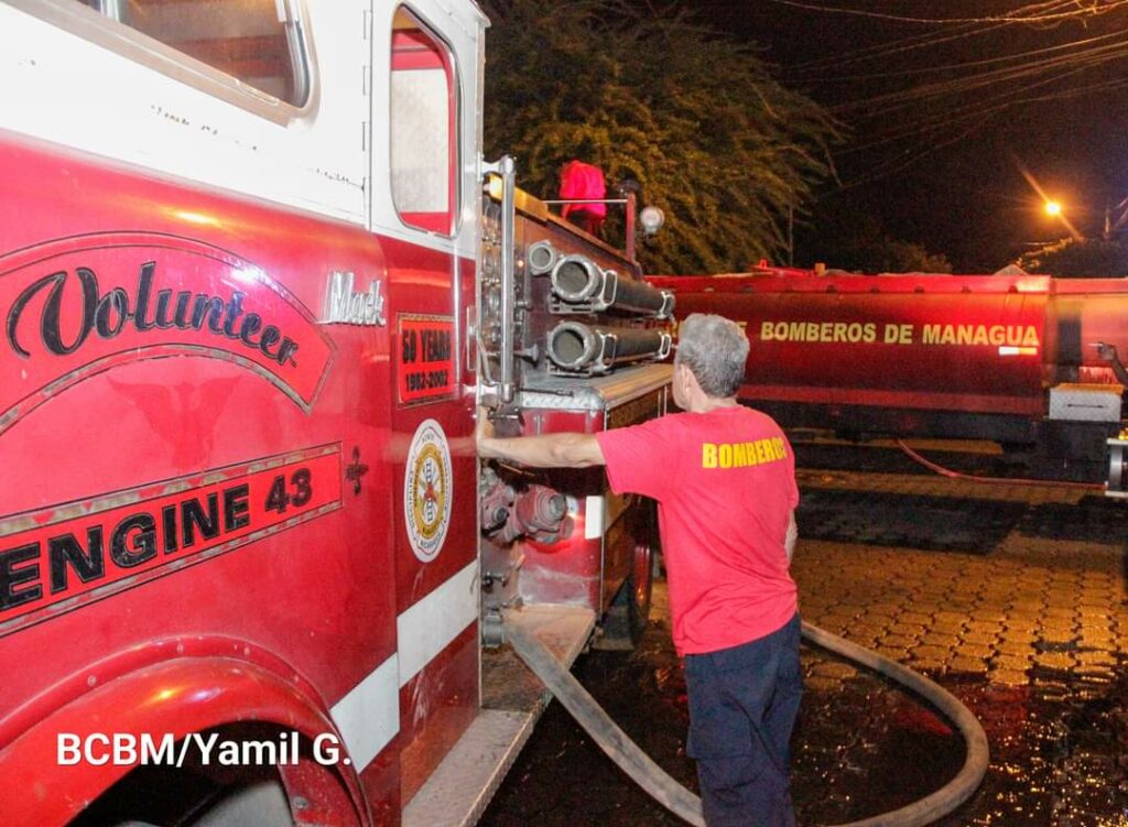 Agentes de la Dirección General de Bomberos y el Benemérito Cuerpo de Bomberos, lograron controlar y sofocar un gran incendio que se desató la noche de este miércoles, en un negocio de tapicería y una vivienda, ubicada de donde fue el Banco Popular Monseñor Lezcano, 1 cuadra al lago y 3 y media arriba, en Managua.