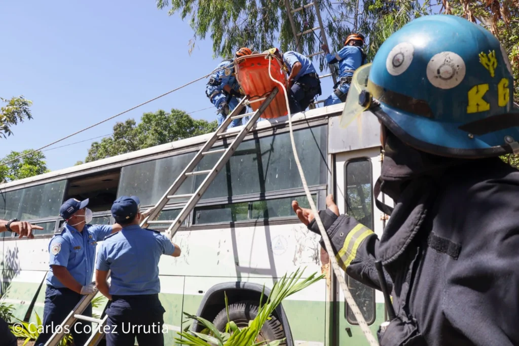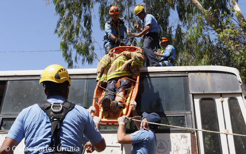 Con el objetivo de estar preparados para atender las emergencias de las familias nicaragüenses, los Bomberos Unidos realizaron este miércoles un simulacro de rescate a una persona a través del uso de las técnicas de las cuerdas.