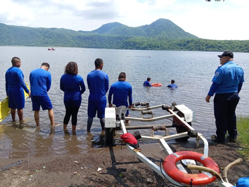 Bomberos Unidos desarrollan ejercicio de rescate en la laguna de Xiloá