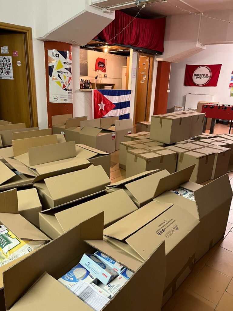 Estas donaciones se suman al envío de ayuda humanitaria que llevó a la isla la primera delegación del Convoy Nuestra América, constituida por 120 representantes de 19 países, 50 asociaciones y colectivos, 13 movimientos políticos y sindicatos y cuatro eurodiputados, con suministros aportados desde Roma y Milán, Italia.