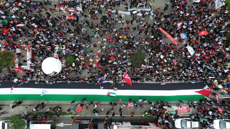 Miles de brasileños llenaron las calles de la céntrica ciudad de São Paulo y las principales urbes brasileñas este domingo, con la bandera antisionista en alto para exigir y presionar al Gobierno de Luiz Inácio Lula da Silva que rompa las relaciones diplomáticas y comerciales con el Estado de Israel.