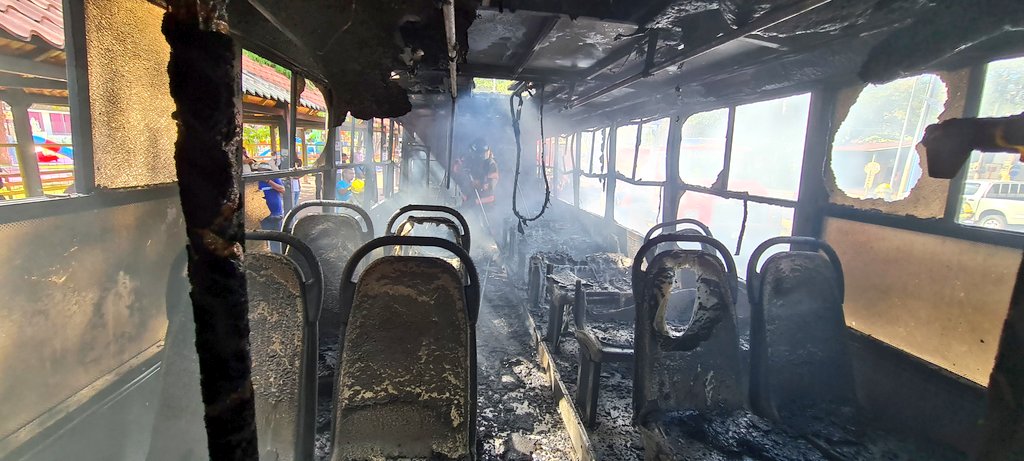 El automotor siniestrado fue apagado por tres unidades del Cuerpo de Bomberos Unificados, que llegaron a los pocos minutos de originado el fuego que dejó convertido en chatarra el bus.