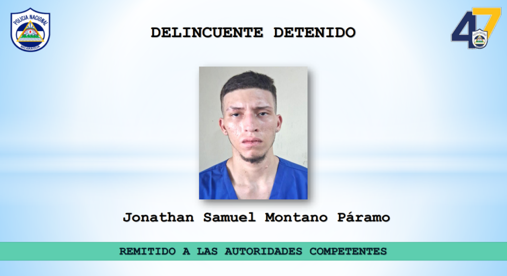 El delincuente Jonathan Samuel Montano Páramo de 20 años, fue capturado por la Policía Nacional, luego de asaltar dos tiendas de conveniencia en el Distrito V de Managua, de donde se llevó un botín de casi 10 mil córdobas.