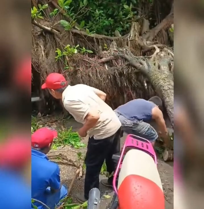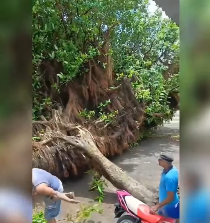 Dos lesionados, entre ellos, un adulto mayor, es lo que provocó la caída de un frondoso árbol de chilamate, en el Estadio Manuel Condega de la Isla de Ometepe, en el departamento de Rivas.