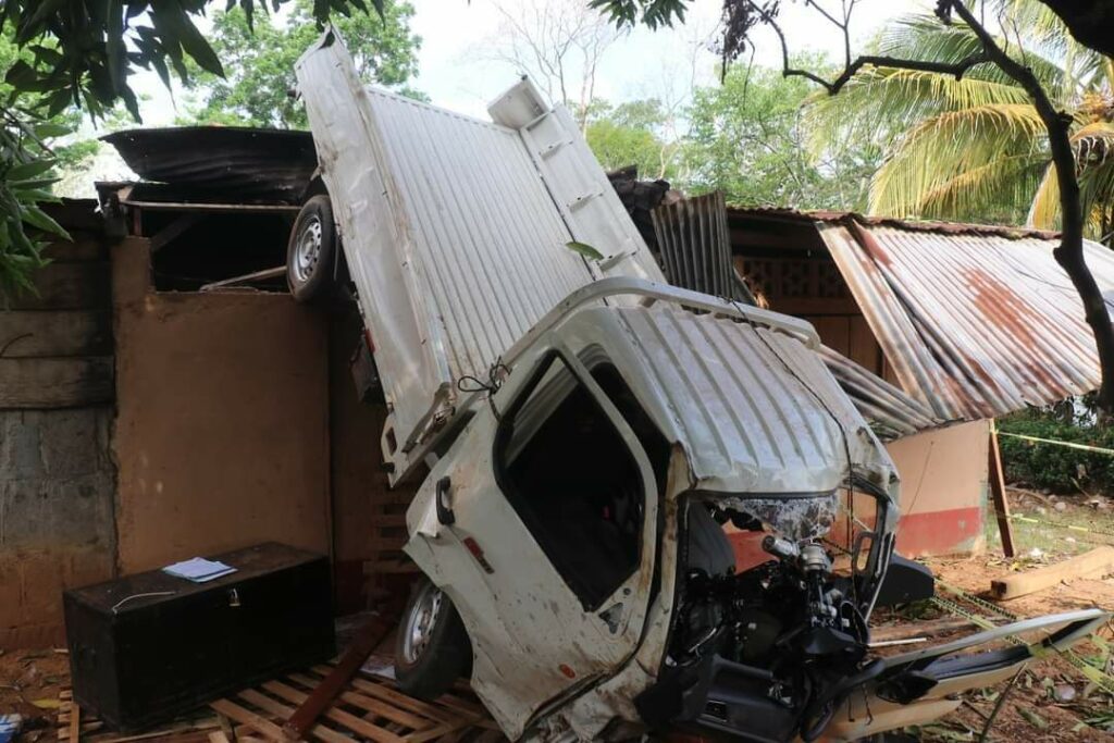 Según testigos, el conductor del camioncito iba a toda velocidad y se durmió, por lo que se salió de la carretera, se pasó llevando un árbol de mango y luego fue a impactar contra la casa del señor José Antonio Díaz Zamora, quien dijo que al momento del accidente él y su familia estaban dormidos y sólo escucharon un estruendo y gritos pidiendo ayuda.