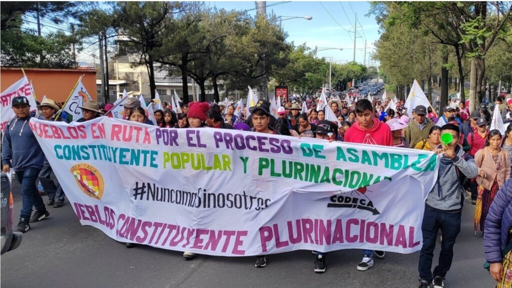 Los manifestantes pidieron al Gobierno de Arévalo que convoque a un proceso de “Asamblea Constituyente Popular y Plurinacional” y pueda lograr así el “verdadero cambio” que requiere el país, para dejar atrás el modelo “neocolonial” que han sufrido por años y los ha llevado a la pobreza.