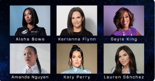 🚀 Meet the New Shepard NS-31 crew launching this spring: Aisha Bowe, Amanda Nguyen, Gayle King, Katy Perry, Kerianne Flynn, and Lauren Sánchez, who brought the mission together. Read more: https://t.co/w4ryNViYPI pic.twitter.com/qm45kHVc2e