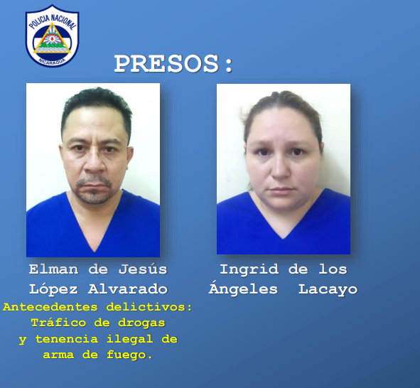 La Policía Nacional capturó a Elman de Jesús López Alvarado y a Ingrid de los Ángeles Lacayo, por tenencia de cuatro kilos con 429 gramos el 19 de marzo, en el municipio de Mateare, departamento de Managua.