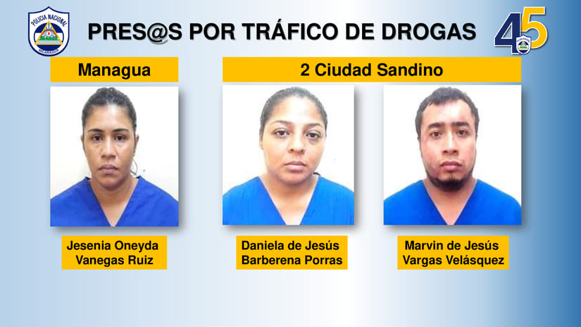 Capturan a tres traficantes de droga en Managua
