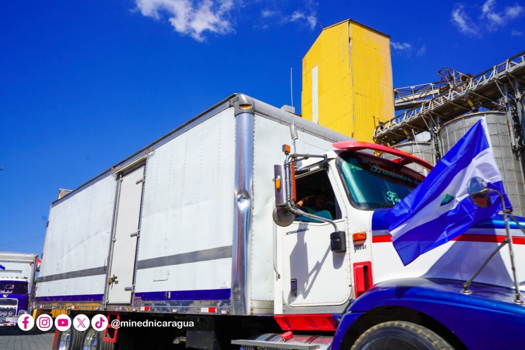 En el traslado desde Managua hasta los colegios de todo el país, los camiones están siendo custodiados por la Policía Nacional.