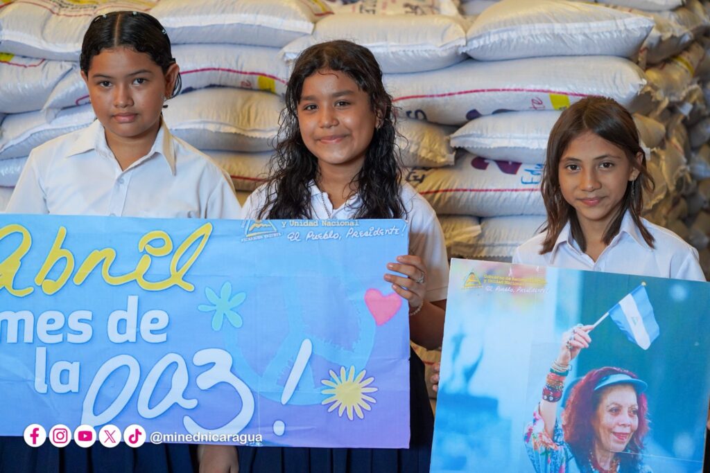 “Estamos muy contentos como parte de Abril Victorioso, Abril Creativo, Abril de la Paz, entregando esta segunda merienda. El primer departamento que va es hacia la región de la Costa Caribe Norte, también vamos a estar avanzando el día de mañana (sábado) y el día domingo hacia Zelaya Central, Chontales, Río San Juan, hasta concluir en la segunda semana de mayo acá en Managua con todas las escuelas del país”, agregó la ministra.