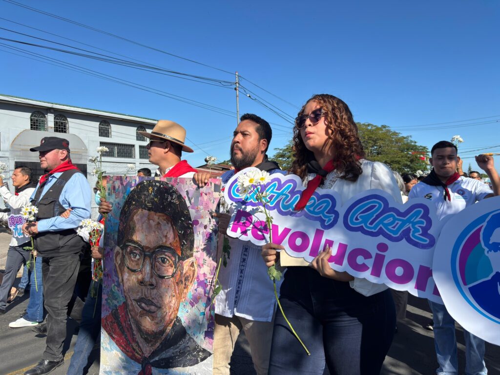 “Venimos a reafirmar combate, conciencia y victoria. Aquí está Leonel Rugama, poeta guerrillero, joven irreverente, militante absoluto de la causa del pueblo. Leonel no pidió permiso para hacer historia, la escribió con coraje, con palabra rebelde y con entrega total. Por eso no cayó, se hizo inmortal. Leonel vive en este pueblo que no se arrodilla, en esta juventud que no se deja confundir, que no retrocede y que no traiciona la historia”, expresó la dirigente de la JS, Marcia Matamoros.
