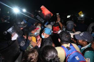 Más de 3.000 migrantes hondureños (caravana) avanza en Guatemala tras superar barrera policial y sigue camino a México, país que