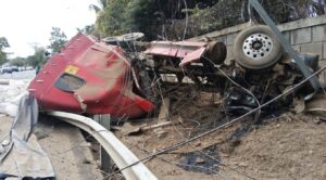 Una falla en el sistema de frenos en una rastra que transportaba varios quintales de azúcar, fue lo que al