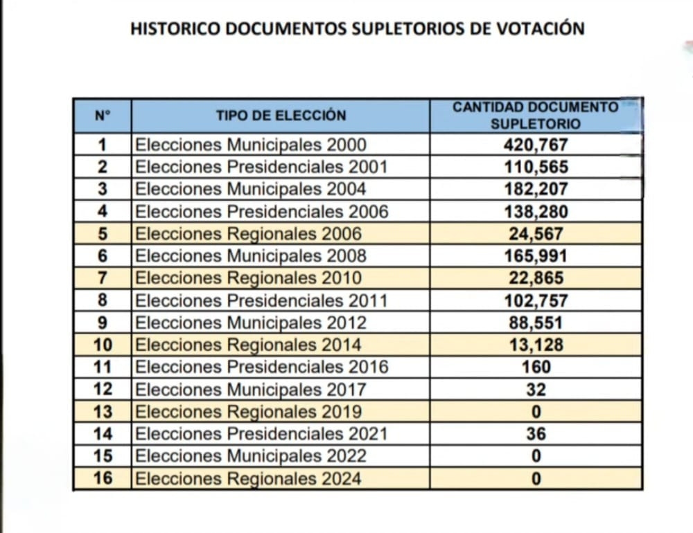 Mencionó además, que la con la automatización del sistema para poder ejercer el derecho al sufragio en los comicios municipales y generales, la entrega del documento supletorio se ha reducido a cero.