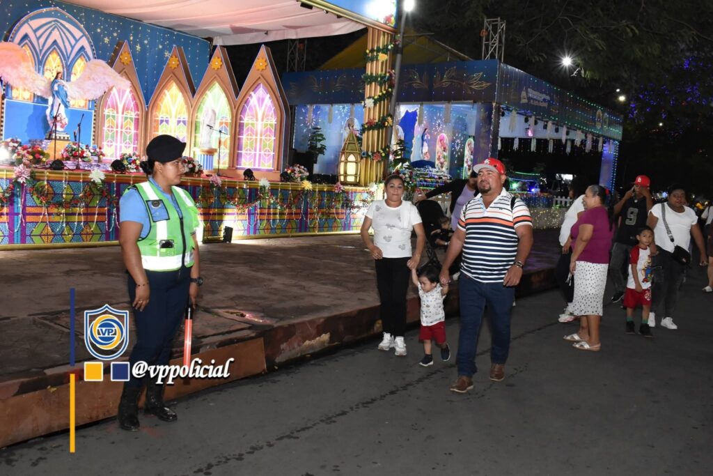 “Se brindó protección a Purísimas del 7 de diciembre, Purísimas Acuáticas del 8 de diciembre en los departamentos de Managua, León, Chinandega, Carazo, Rivas, Región Autónoma de la Costa Caribe Sur, Chontales, El Rama, Madriz y Río San Juan”, añadió la funcionaria policial.