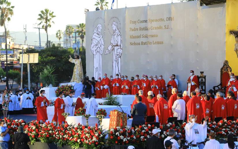 La ceremonia fue presidida por el Cardenal Gregorio Rosa Chávez, quien hizo mención del legado y la misión sacerdotal del padre jesuita Rutilio Grande, quien fue asesinado el 12 de marzo de 1977 antes del inicio de la guerra civil en El Salvador (1980-1992), junto a Manuel Solórzano y Nelson Rutilio, quienes lo acompañaban. El Fray Cosme Spessotto fue asesinado el 14 de junio de 1980.