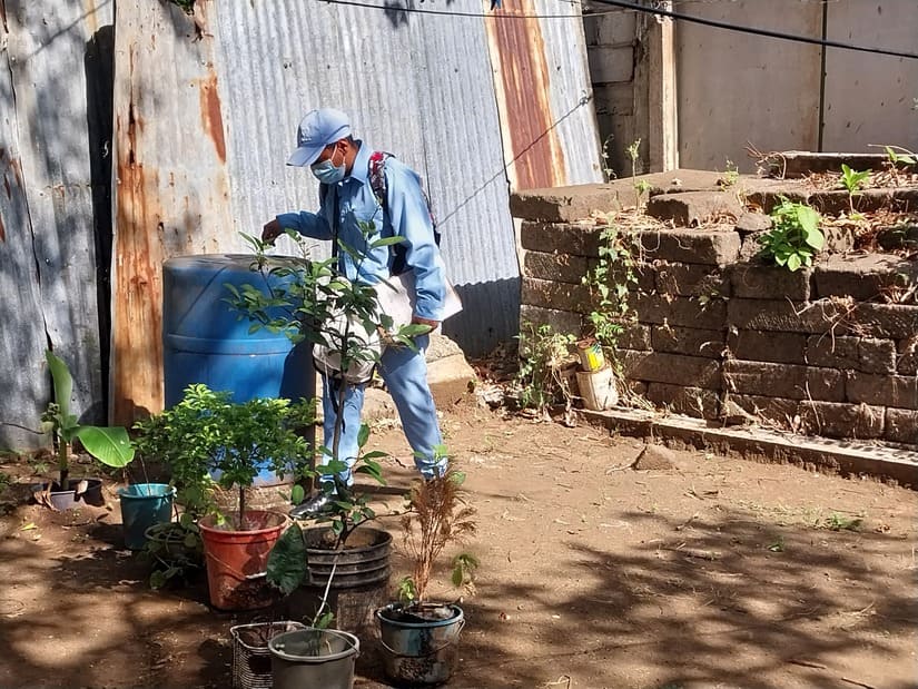 “Nosotros realizamos tres acciones básicas; aplicación del abate que tiene una efectividad de 60 días en pilas y barriles, destrucción de criaderos y mensaje de concientización para que cada familia no permita en su hogar a los zancudos”, comentó Saldaña.