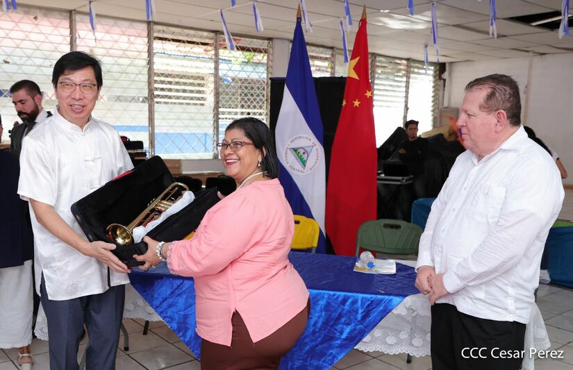 Por otro lado el embajador de China en Nicaragua, expresó su alegría al entregar los instrumentos musicales.