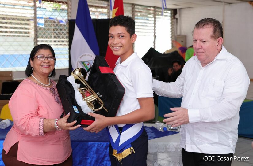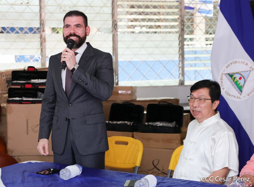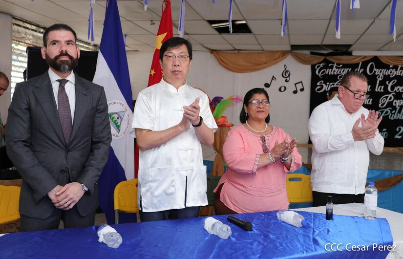 “Aquí estamos el día de hoy recibiendo la primera entrega, de un total de 5 orquestas estudiantiles que están dotando de instrumento nuestros hermanos chinos y hoy se hace la entrega a esta primera orquesta, trabajando por la cultura, por la paz, trabajando por la vida y reiteramos nuestro profundo agradecimiento al gobierno de la República Popular de China, su presidente, camarada, compañero, hermano Xi Jinping, al Comité Central del Partido Comunista, al compañero embajador Chen Xi. Y aquí en Nicaragua tienen a un pueblo hermano, fraterno, socialista, que desarrolla política por el bienestar de los nicaragüenses y por la convivencia en paz de toda la humanidad”, indicó Laureano.