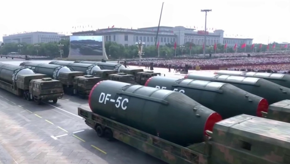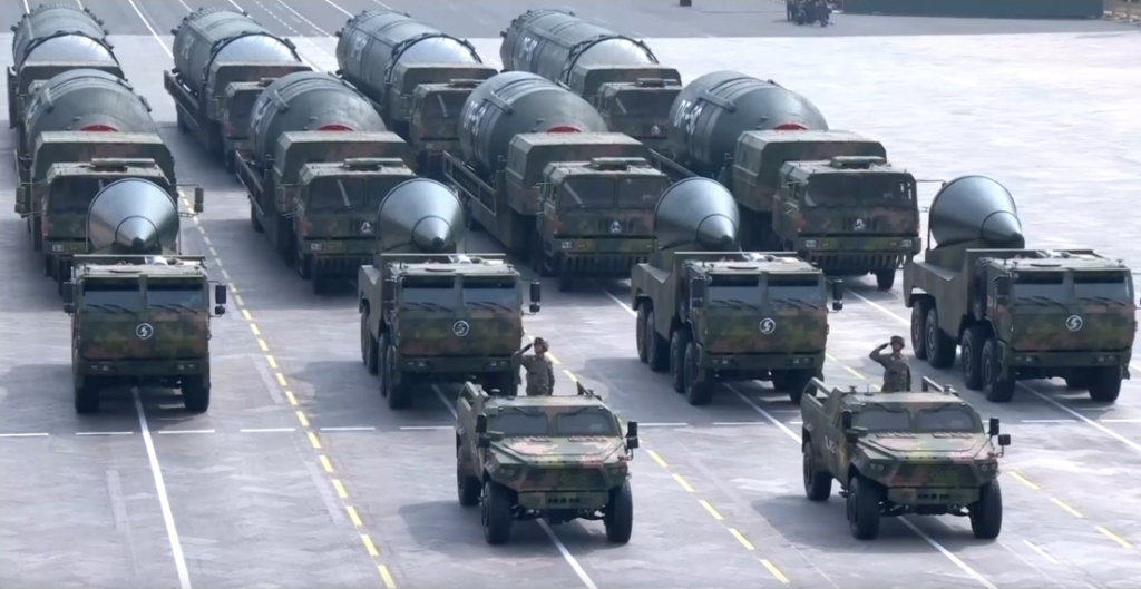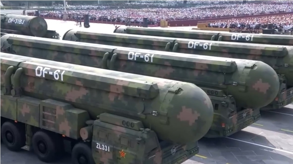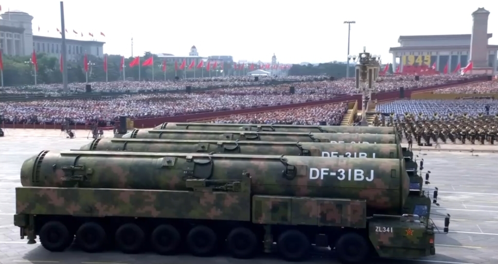 Además, durante el desfile presentó Pekín por primera vez su tríada nuclear, que incluye el misil de largo alcance JingLei-1, basado en aire, el misil intercontinental JuLang-3, lanzado desde submarino, y los misiles intercontinentales DongFeng-61 y DongFeng-31, basados en tierra.