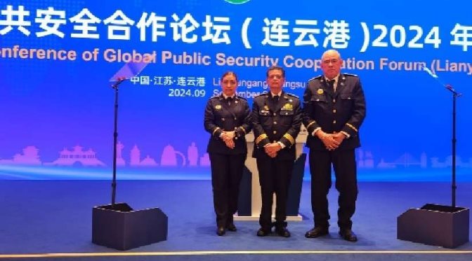 Asimismo, el jefe policial junto a los comisionados generales Esther María Muñoz Castellano y Julio César Sánchez Reynosa, participaron este lunes, en el Foro de Cooperación Global de Seguridad Pública, que se lleva a cabo del 9 al 11 de septiembre, en la ciudad de Lianyungang, República Popular China, donde expusieron los logros en materia de seguridad pública alcanzados en nuestro país.
