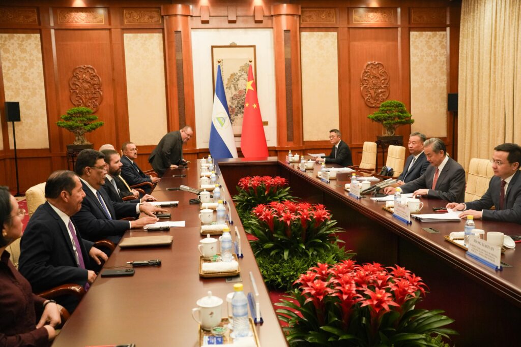En el marco de su visita oficial a la República Popular China, una delegación de Nicaragua, encabezada por el Asesor Presidencial, compañero Laureano Ortega Murillo, sostuvo este lunes una importante reunión bilateral con el Ministro de Relaciones Exteriores de China, Wang Yi, en la histórica Casa de Huéspedes de Estado, DiaoYu Tai, en Beijing.