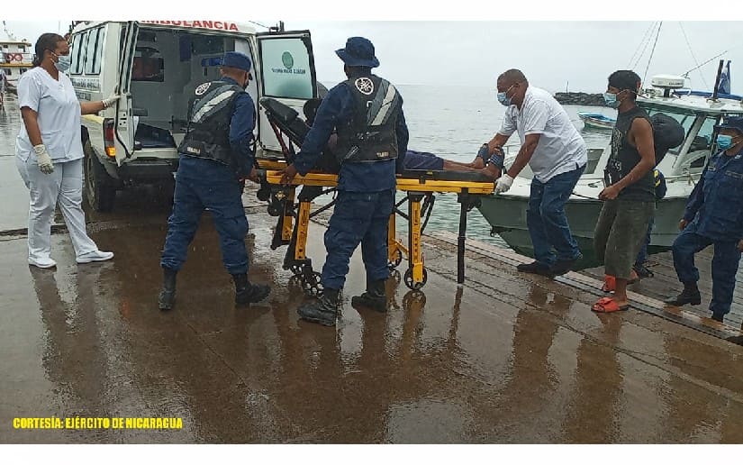 El Ejército de Nicaragua consecuente con el lema de que “Somos el Pueblo mismo uniformado trabajando en su propio beneficio”, a través del Distrito Naval Caribe, el 16 de noviembre de 2021, realizó el traslado del ciudadano Isaías Efraín Amador López de 38 años de edad, hacia el muelle municipal de Corn Island, para posteriormente ser trasladado al Hospital Primario Ethel Kandler y recibir atención médica requerida, quien en sus labores de pesca presentó complicaciones de salud, a bordo de la embarcación de nombre “Capt Harold”, en la posición φ=12°21’00″N; λ=083°01’00″W, a 12 millas náuticas al noroeste de Corn Island, Región Autónoma de la Costa Caribe Sur.