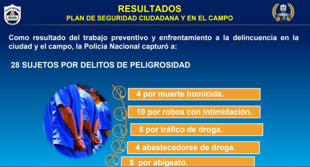 Dos mil 222 coberturas de seguridad a 23 rubros de producción, son las que ejecutó la Policía Nacional en la última semana, a través del Plan de Seguridad Ciudadana y en el Campo, lo que permitió la detención de 28 sujetos por delitos de peligrosidad.