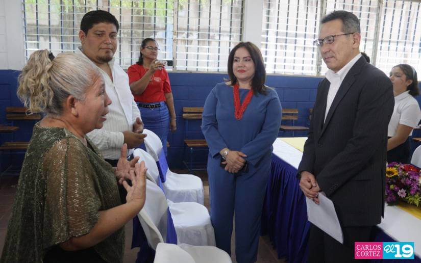 “Estamos haciendo entrega de estos equipamientos que consisten en entrega de pupitres, pizarras, kits, sets para docentes, pero también kits de equipamiento para niños de educación inicial que con esto se fortalece y contribuye a la calidad de la educación. Más de un millón 200 mil córdobas son los que se están invirtiendo en este proyecto, en esta obra, y es importante mencionar que desde el 2007 el pueblo y Gobierno de Japón ha venido haciendo su aporte en este centro educativo en construcción también de pabellones”, declaró la titular del Ministerio de Educación, Mendy Aráuz.