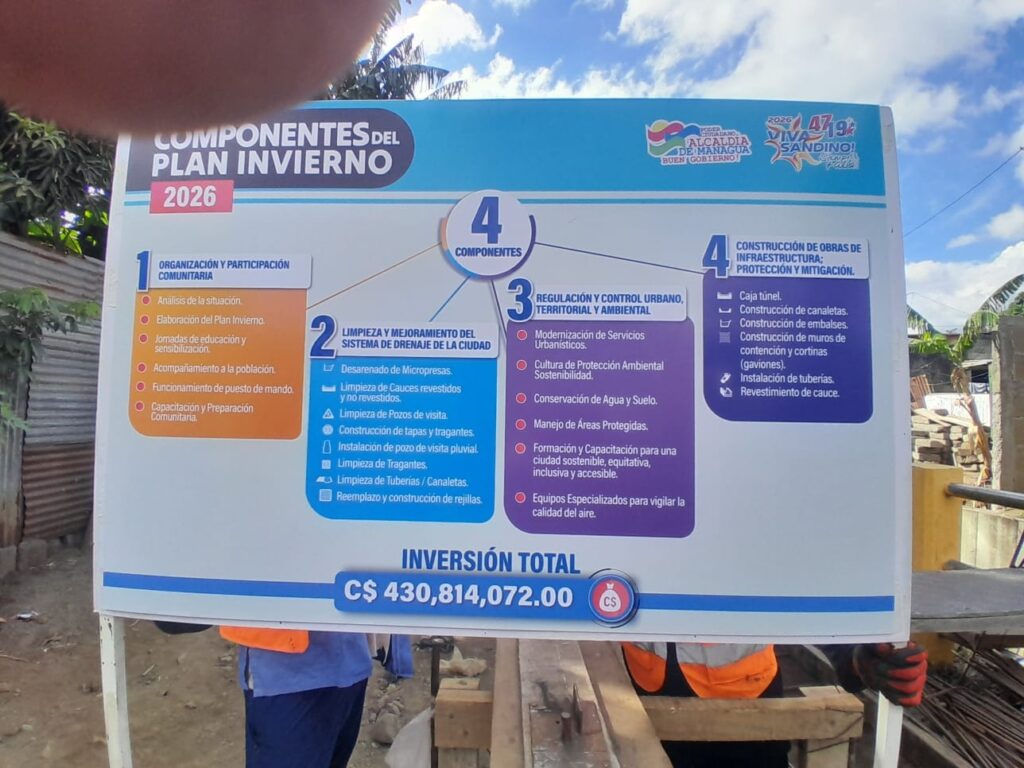 Cuatrocientos treinta millones de córdobas es la inversión que la Alcaldía de Managua destinará para la ejecución del Plan Invierno Seguro 2026 en todos los distritos de la capital.