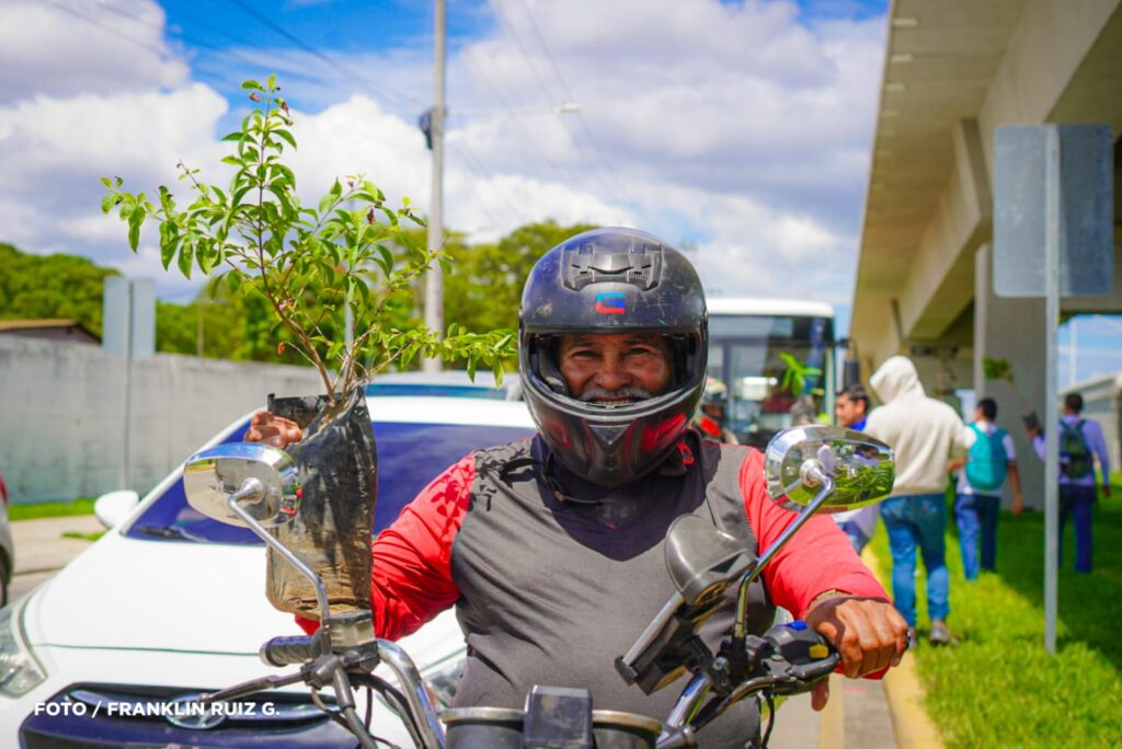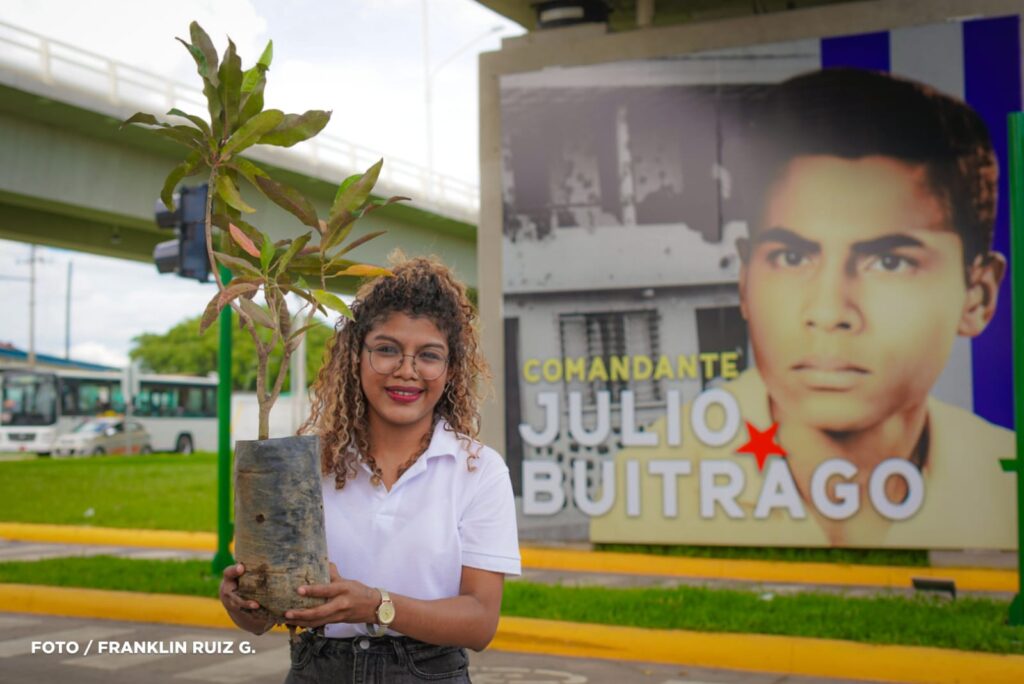 En el marco de las Fiestas Patrias y en homenaje a los héroes y mártires, este martes la Alcaldía de Managua en coordinación con el Movimiento Ambientalista Guardabarranco y la Juventud Sandinista, entregaron árboles frutales y ornamentales a los conductores, pasajeros y peatones que circulaban por el sector del Paso a Desnivel Comandante Julio Buitrago, en la Carretera Norte.