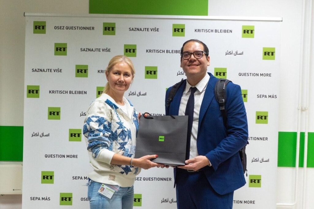 Este jueves se realizó un fraterno intercambio de experiencias con personal de RT en Español, en la ciudad de Moscú y una delegación nicaragüense de Comunicadores Sandinistas encabezada por el Compañero Maurice Ortega Murillo.