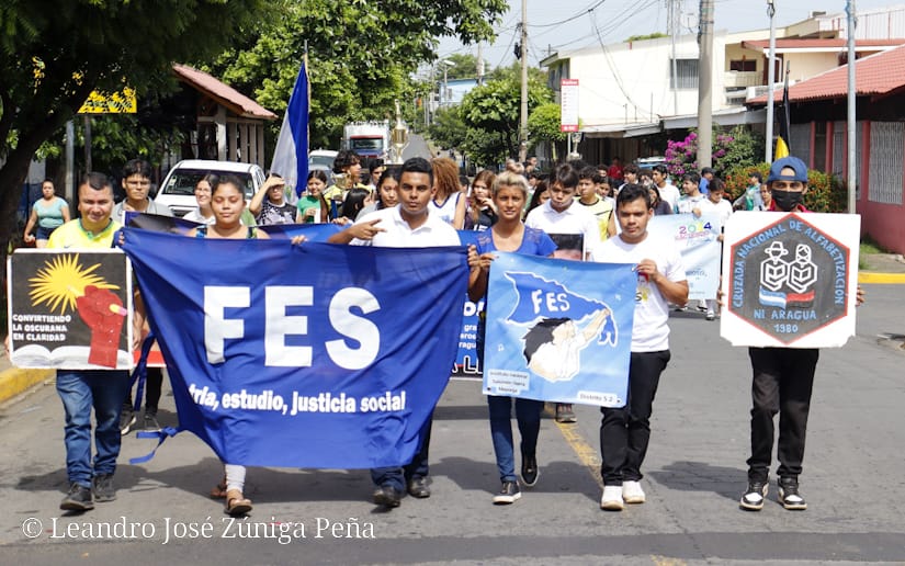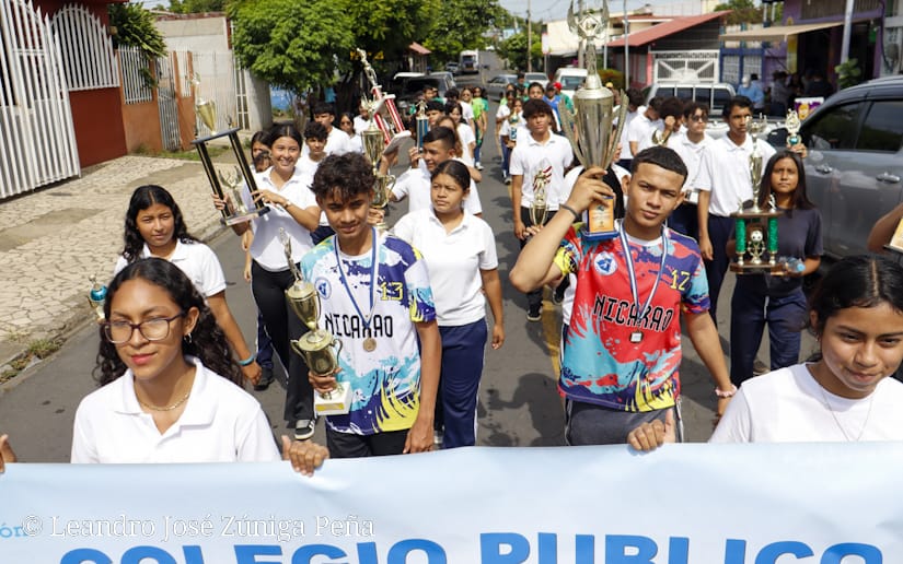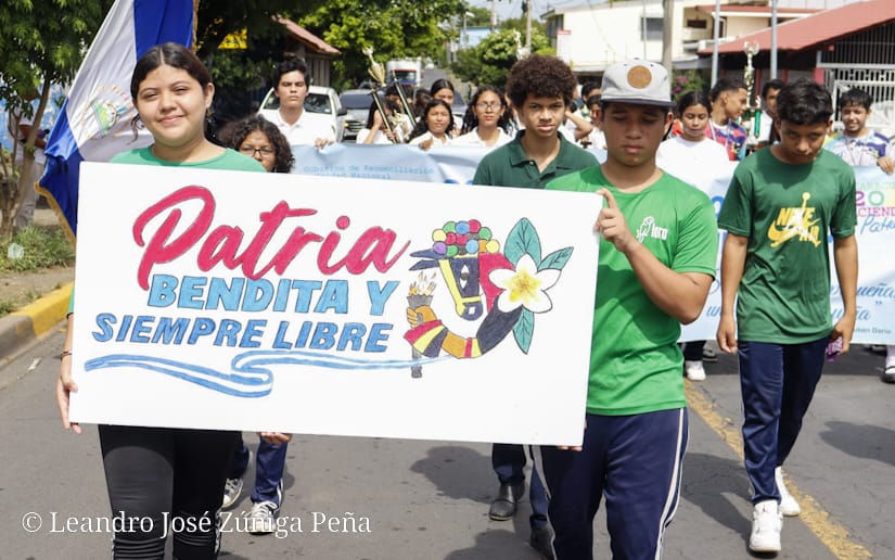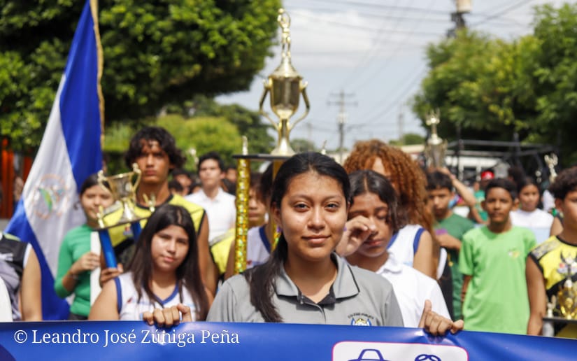 Al ritmo de las bandas rítmicas y sones nicaragüense los estudiantes de seis centros educativos del Distrito V de Managua, desfilaron este 23 de agosto para conmemorar el aniversario 45 de la fundación de la Juventud Sandinista 19 de Julio y 44 años del cierre de la Gran Cruzada Nacional de alfabetización, informó el Presidente Departamental de la Federación de Estudiantes de Secundaria (FES), Ilish Martínez.