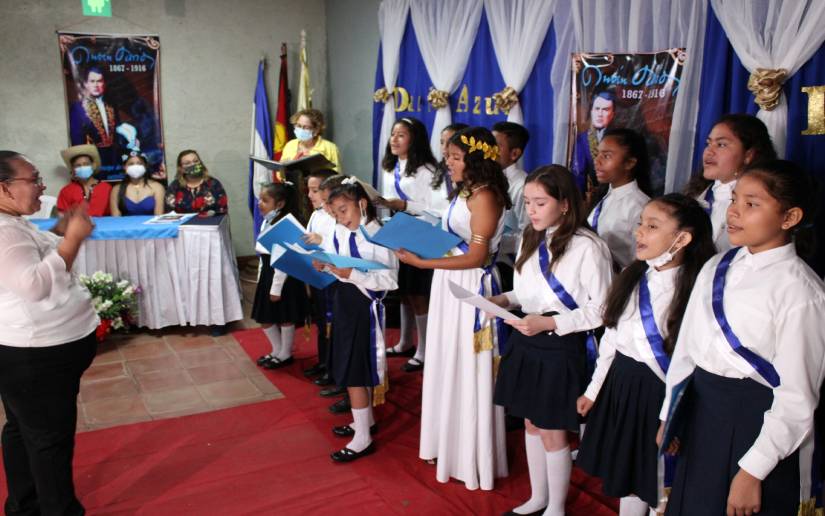 El homenaje estuvo a cargo del coro estudiantil del distrito, el que interpretó musicalmente poemas de Darío, entre ellos “Del trópico”, pero en toda Nicaragua estamos conmemorando y recordando la vida, la obra y el legado de Rubén Darío”, aseguró