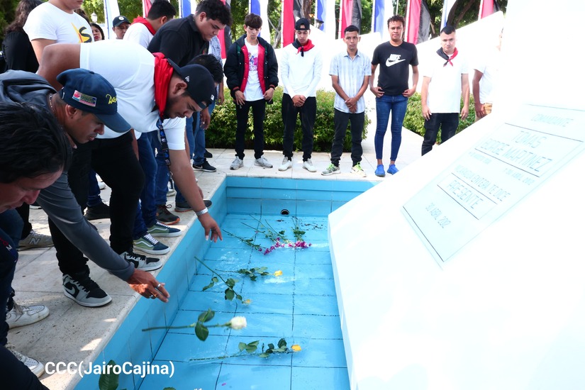 Con flores, bailes, música revolucionaria y diversas actividades, los jóvenes, estudiantes e instituciones gubernamentales, rindieron este 30 de abril, homenajes al comandante Tomás Borge, en el doceavo aniversario de su tránsito a la inmortalidad.