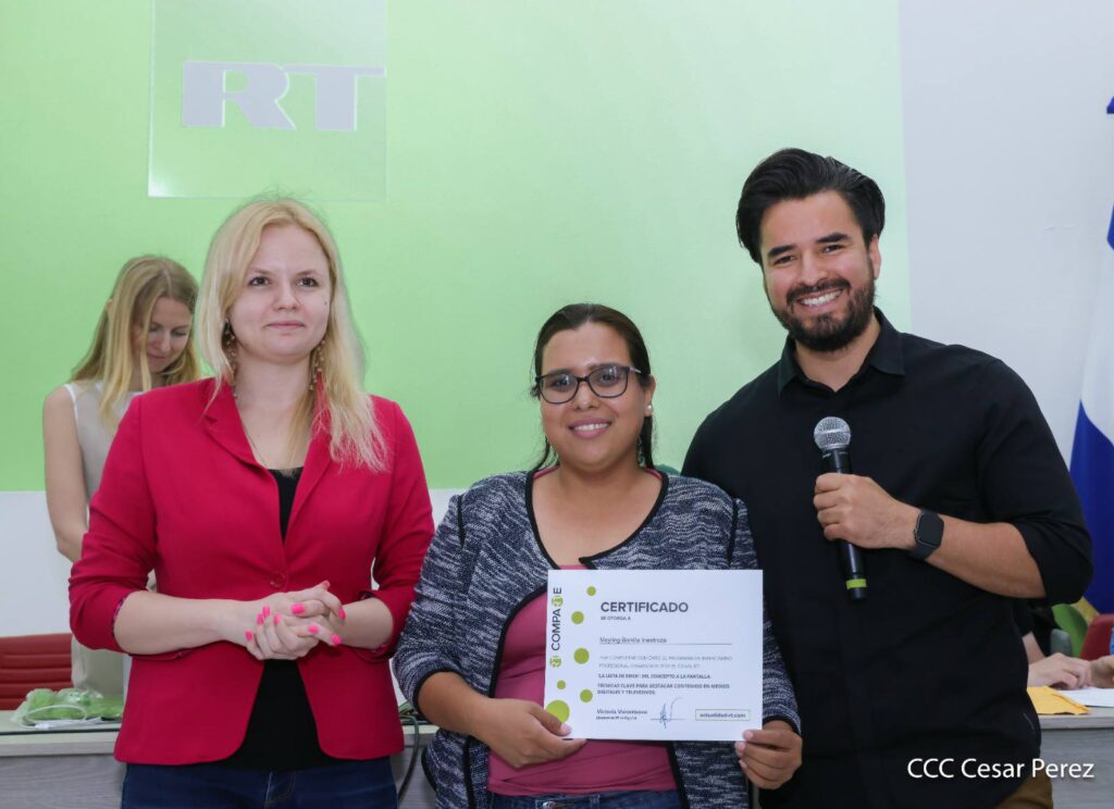 “Para nosotros ha sido un honor y un placer compartir con los comunicadores nicaragüenses algunos de estos conocimientos y esta experiencia que hemos acumulado y adquirido a lo largo de los años. Nos gustaría agradecer nuevamente al Copresidente Comandante Daniel Ortega Saavedra y a la Copresidenta Compañera Rosario Murillo por darnos esta oportunidad y este espacio”, añadió Kuropátova.