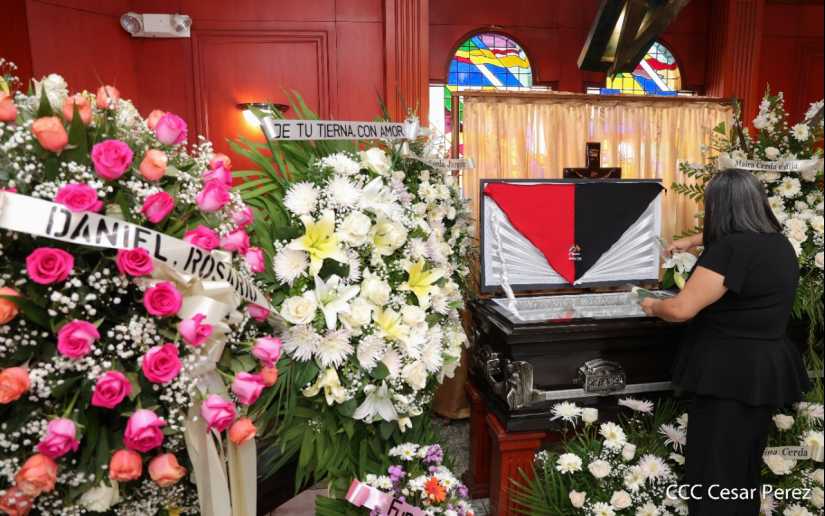 “Queremos mandar un abrazo grande a la familia, las hijas, hijos, nietas, nietos, de la compañera Josefina Cerda, quien ayer por la noche pasó a otro plano de vida. Están en la vela, luego van a una misa y luego pasan al cementerio General, para llevarla al lugar de reposo que ella escogió, para estar junto a sus familiares, su padre. Ese abrazo solidario va para Mayra Valeria, Ana Josefina, Emma Renné, todas Borge Cerda, y como decíamos a su familia que están ahí todos juntos despidiendo a Josefina, militante revolucionaria, militante sandinista que se destacó en las luchas contra la dictadura, luchas del pueblo, lucha sandinista trabajando en la clandestinidad como parte de los frentes combatientes del FSLN”, expresó.