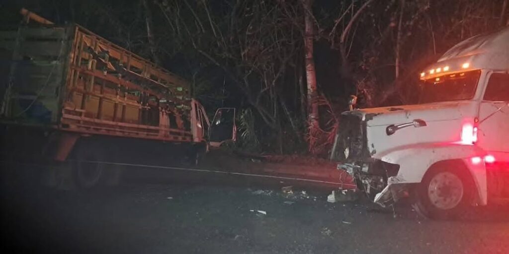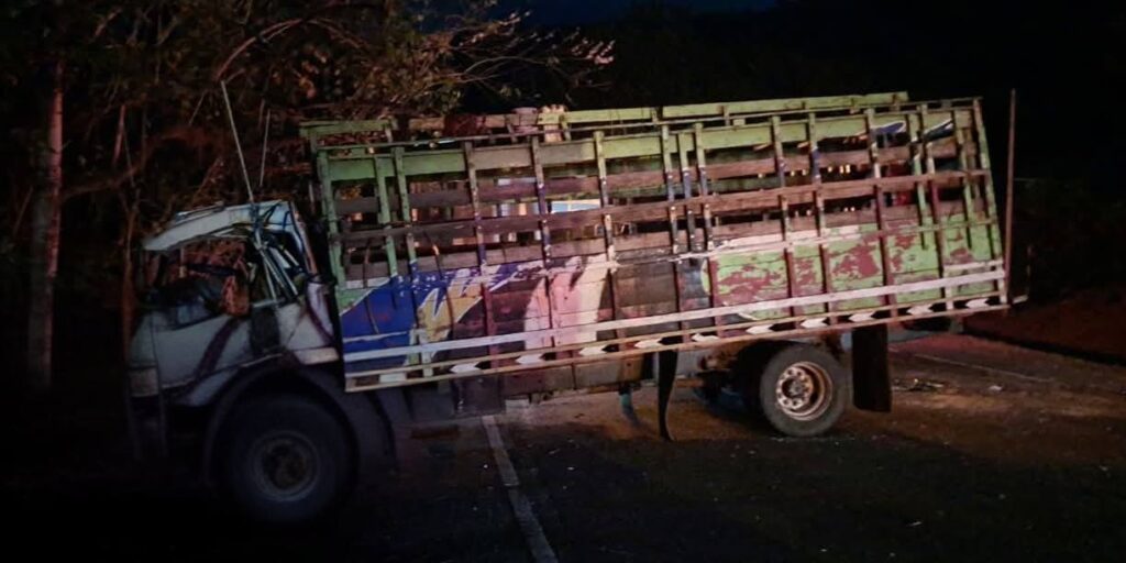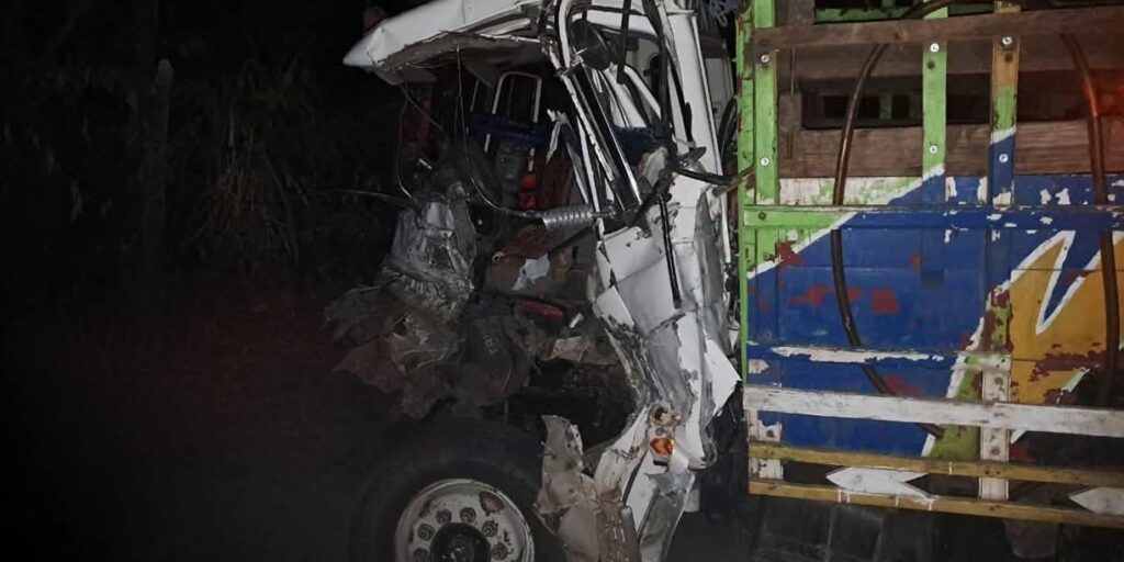 Producto del encontronazo, los dos ayudantes del camión que se usa para transportar ganado y cuyas identidades se desconocen, resultaron con lesiones y fueron trasladados al Centro de Salud Denis Gutiérrez.