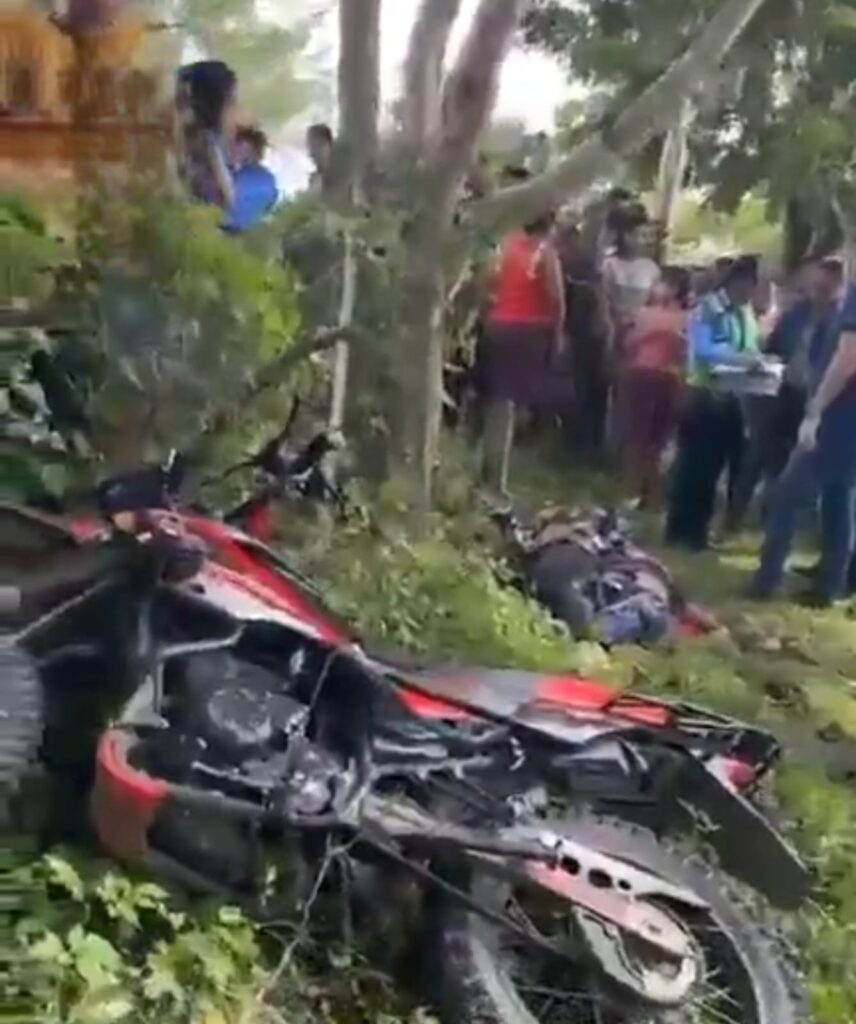 La mortal colisión ocurrió cuando el conductor de la moto, placa NS 42550, perdió el control y se salió de la vía, impactando primeramente contra una cerca de alambre y luego contra un árbol.