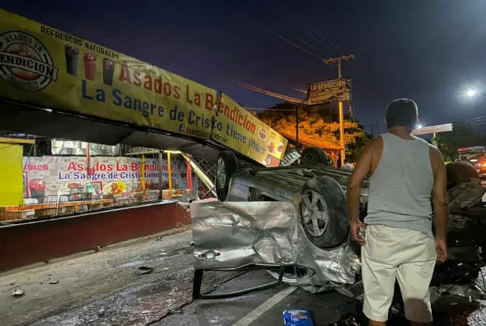 Conducir a exceso de velocidad y en estado de ebriedad, fueron las principales causas para que el chofer de una camioneta colisionara contra dos negocios de venta de pollos asados, en el kilómetro 9 de la carretera Nueva a León.