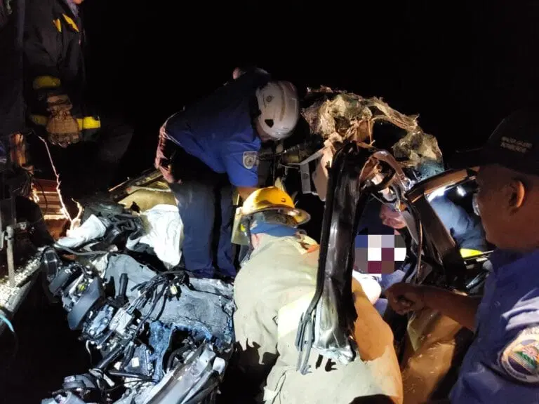Los Bomberos Unidos tuvieron que realizar un trabajo meticuloso para extraer el cuerpo del occiso, que quedó prensado entre la chatarra de su vehículo para luego trasladarlo al Instituto de Medicina Legal.