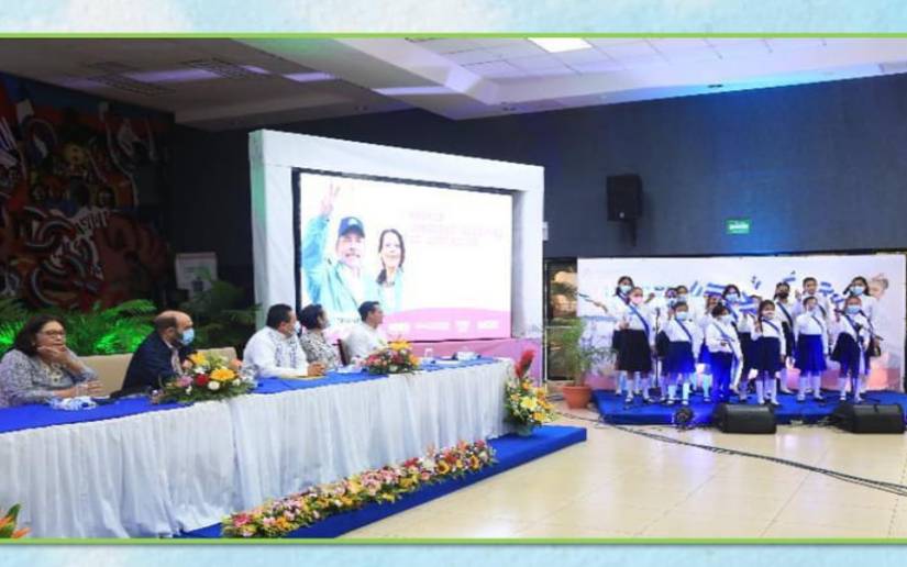 Reunid@s en el Auditorio “Fernando Gordillo Cervantes” de la UNAN-Managua, y en 200 salas virtuales en delegaciones municipales y departamentales del MINED, centros tecnológicos de INATEC, recintos universitarios del CNU en todo el país; del Caribe a occidente, del norte al sur.