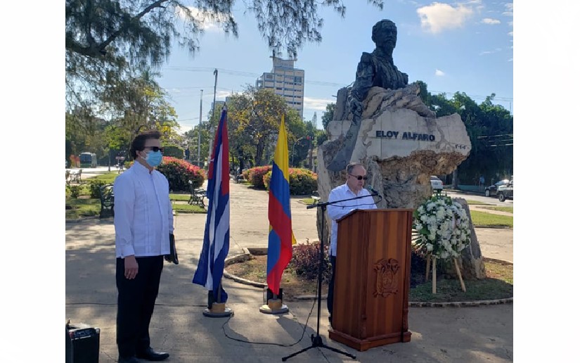 El Acto fue presidido por el Señor Carlos Ernesto Rodríguez Andrade, Encargado de Negocios a.i. de Ecuador en Cuba, quien compartió sobre la Vida y Lucha del General Alfaro.