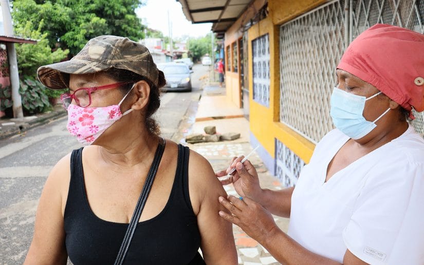 Las brigadas de vacunación del Centro de Salud Edgard Lang visitaron el barrio Tierra Prometida, en Managua, para aplicar las vacunas contra el COVID-19, según el esquema correspondiente de cada ciudadano.