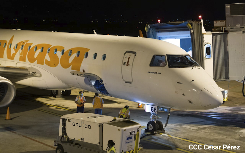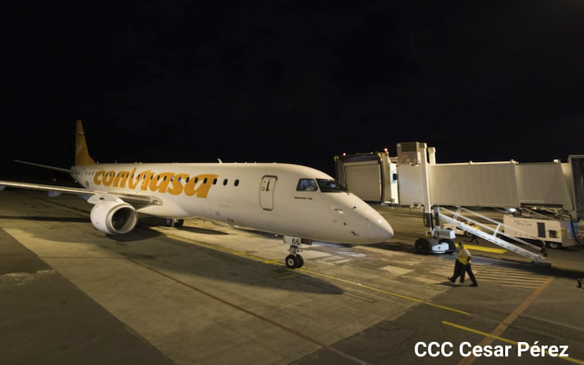 Autoridades del Aeropuerto Internacional Augusto C. Sandino dieron la bienvenida al vuelo de Conviasa, con procedencia de Cuba y conexiones.