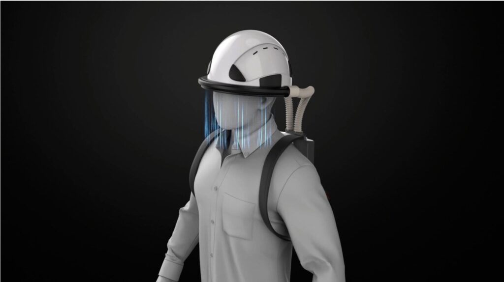 De acuerdo con los creadores, el manipulador introduce el aire del ambiente en el módulo de esterilización antes de enviarlo a un conjunto de boquillas ubicadas en el ala del casco. Posteriormente, estos artefactos expulsarán el aire limpio en forma de cortina, con el fin de proteger el rostro del trabajador.