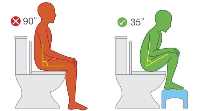 La forma en la que nos sentamos en el váter para defecar es un ángulo de 90º, y esta postura obstruye el conducto natural del intestino bloqueándolo. Sin embargo, si tomamos la posición de un ángulo de 35º, desbloqueamos el intestino y el proceso de defecación puede fluir fácilmente, por lo tanto, la mejor posición para defecar es la de 35 º.